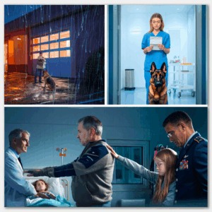 To the nurses, he was just another stray. A large German Shepherd, his coat matted with mud and darkened by rain, paced restlessly…