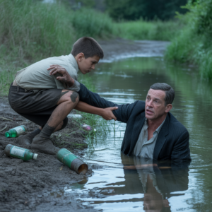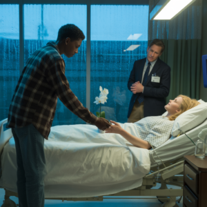 At the end of a cold hospital hallway, a young black boy, barefoot, eyes shining with desperation, stands face to face with a…