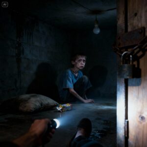 “She locks us in the basement,” the boy whispered through the fence. His eyes were wide, haunted, like he hadn’t seen sunlight in…