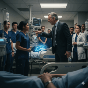 CHAPTER 1: THE DROP The wind on the rooftop of Crestview General Hospital carried the metallic taste of upcoming rain and the…