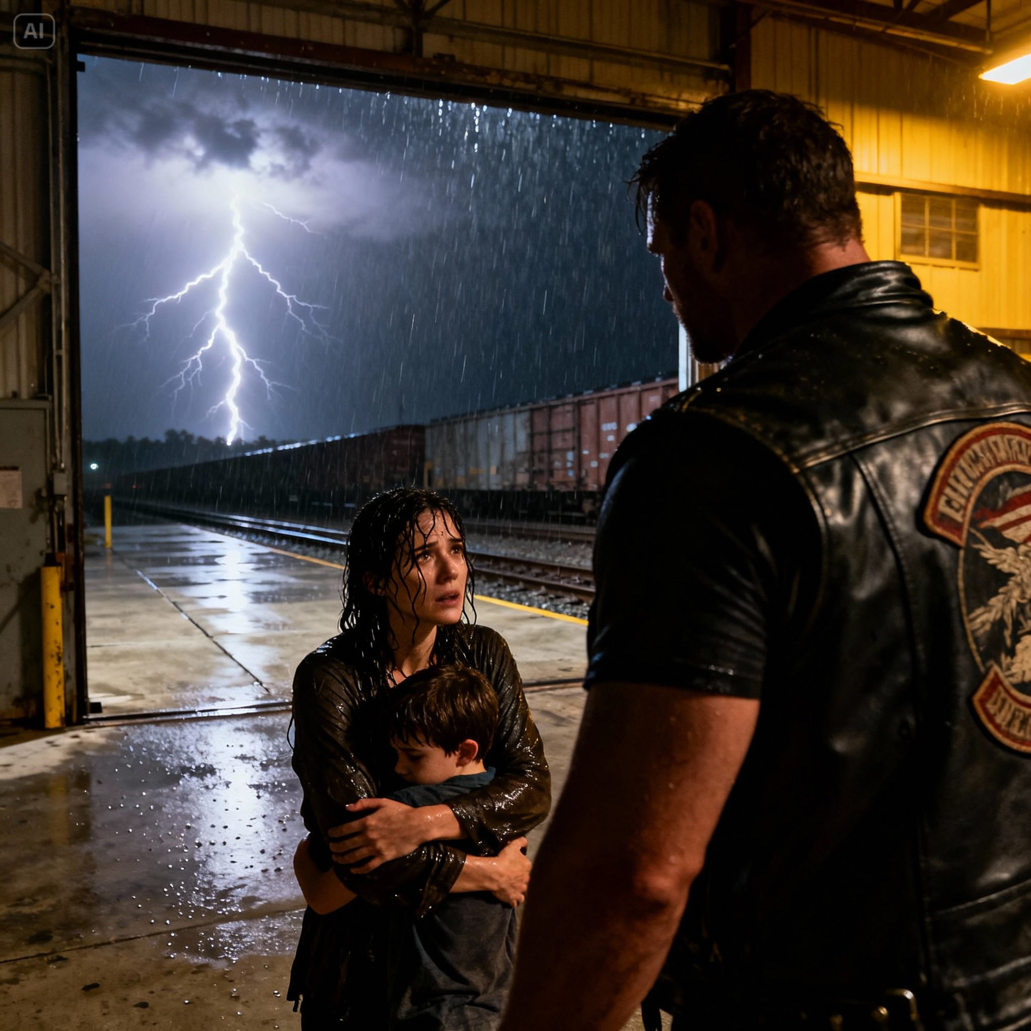 The wind tore at the opening, throwing a spray of cold rain into the warm air of the depot. Standing on the worn concrete of the old loading dock was a woman, so drenched her clothes were a second skin. Her hair was plastered to her face, and her body was shaking, whether from cold or terror, he couldn’t immediately tell. Pressed tightly against her hip, his small face buried in the fabric of her soaked jacket, was a little boy.
