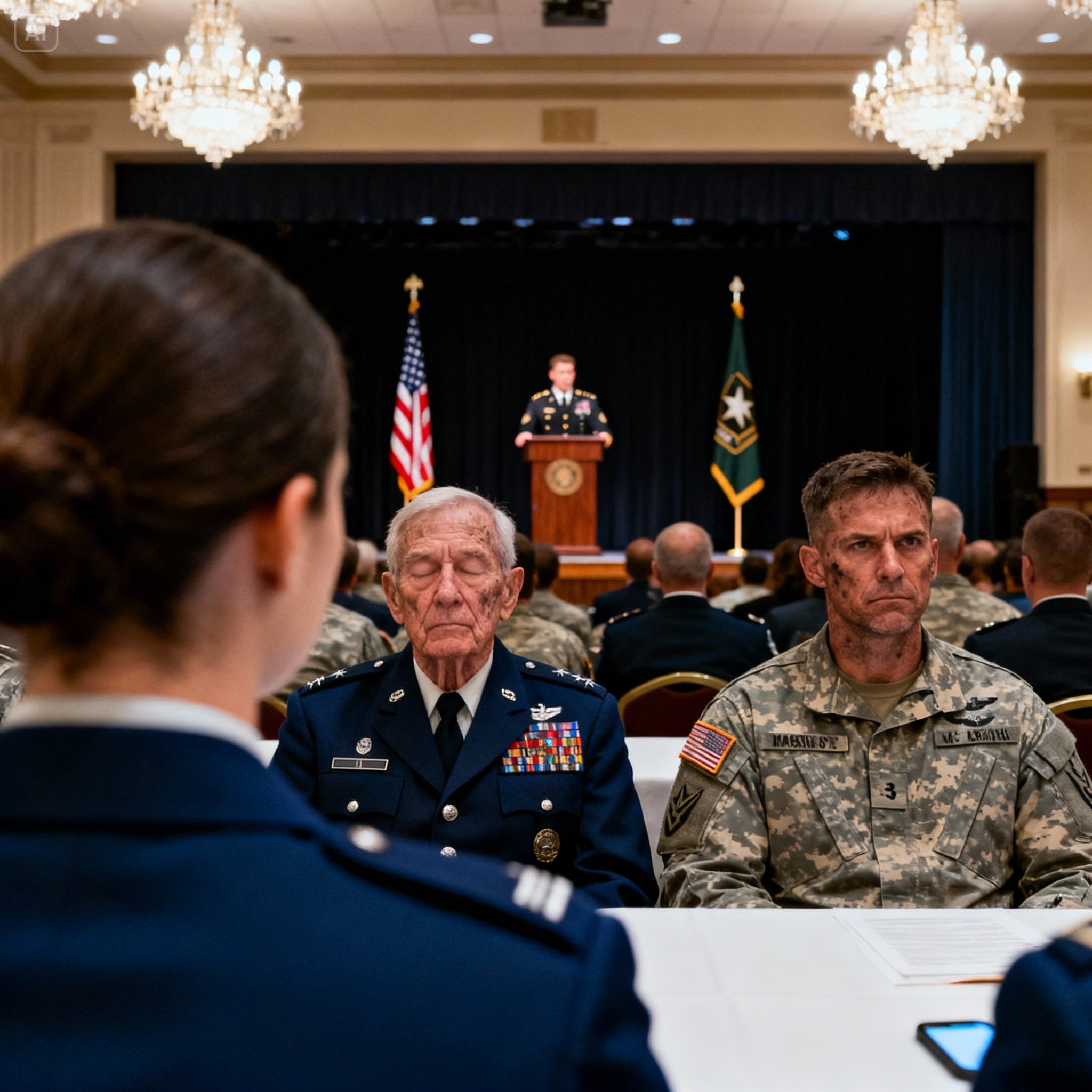 At the podium, General Marcus Harris froze. His mouth was still half-open, the folksy anecdote he’d been about to share dissolving on his tongue. He had only meant to bridge a gap, to pull one of the old guard into the spotlight for a moment of shared history. A friendly question to a decorated veteran, a warm story to break the rigid formality that was suffocating the room. He had tossed a pebble into a pond, and Captain Chambers had just thrown a grenade in after it.