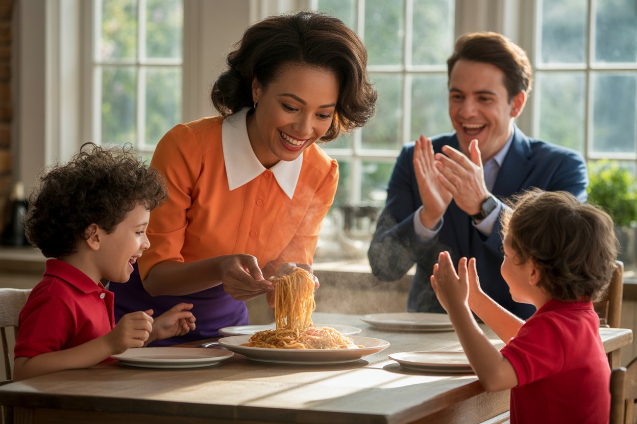 The next morning, soft sunlight filtered through the kitchen windows, painting the room in shades of gold. Naomi stood at the counter preparing breakfast, the smell of butter and cinnamon filling the air. Her heart still ached from the night before, but it was a gentle ache now, the kind that reminded her she was alive. Soon, the sound of footsteps and laughter echoed down the stairs. The four boys burst into the kitchen, arguing playfully about who would get to pour the milk. They looked brighter, somehow freer, as if the weight of sorrow had finally begun to lift.