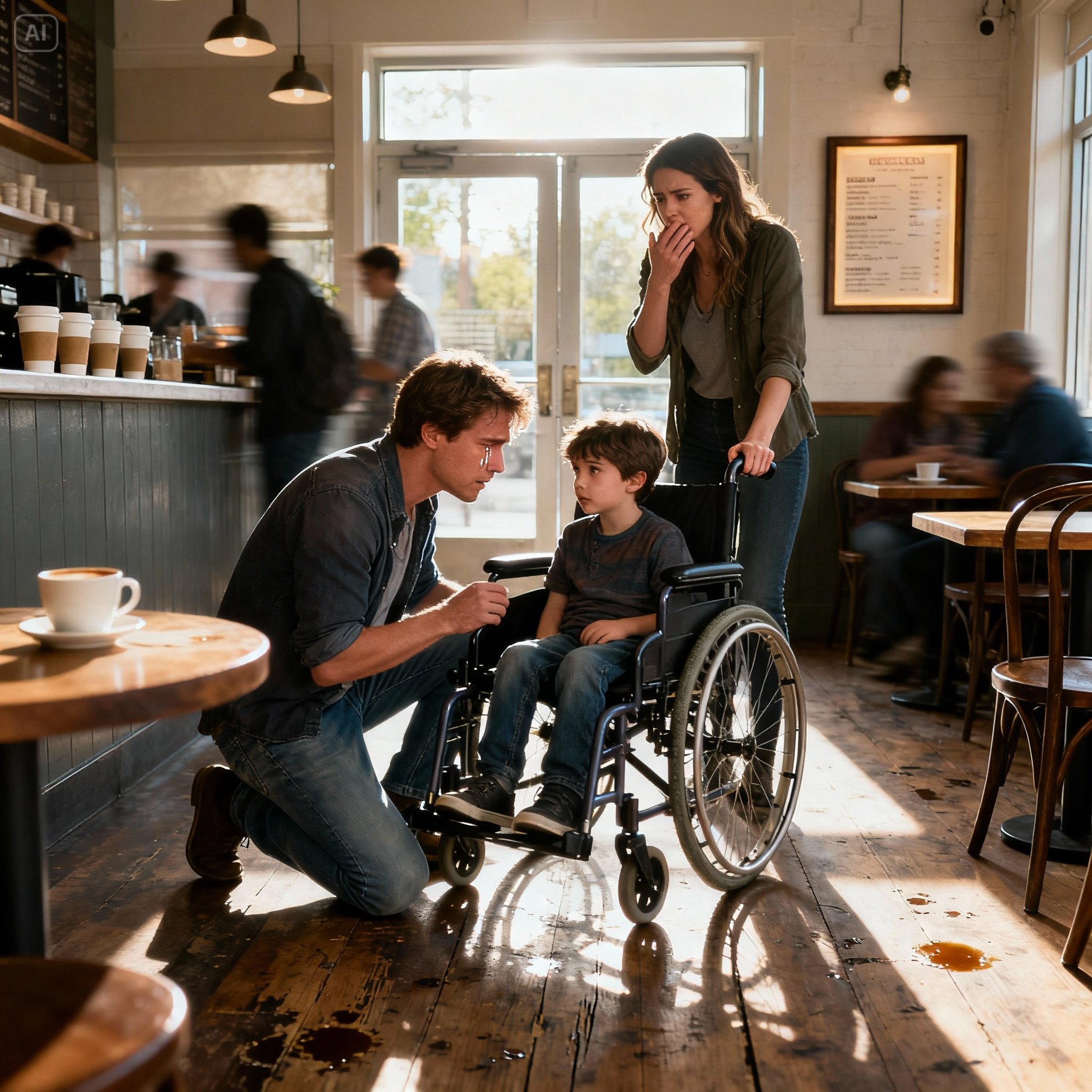 Ethan watched from his corner table as Clara navigated the entrance, her designer heels clicking with a steady, determined rhythm. Pushed ahead of her was a wheelchair, and in it sat a boy of about ten. His slender legs were still beneath a Star Wars blanket, but his bright eyes darted around the café as if he were plotting every possible exit. The buzz of conversation around them faltered. A woman nearby looked away too quickly. A teenager stared until his mother swatted his arm. The barista’s practiced smile tightened, melting into an expression Ethan recognized instantly—that awful cocktail of pity and unease people wear like a mask when faced with a disability.