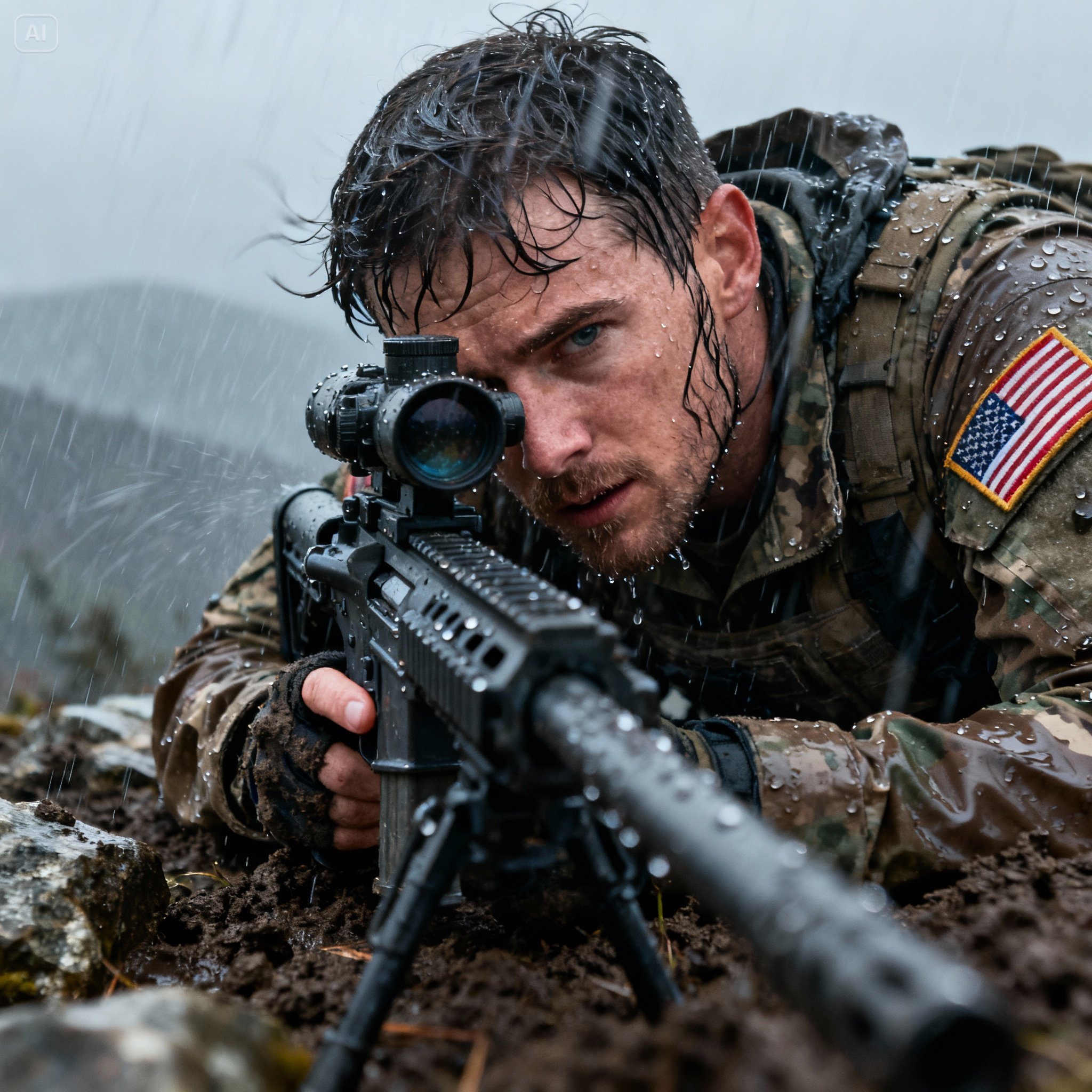 The target was a thousand meters downrange. A standard steel torso plate, its shape blurred and indistinct through the rain and the low clouds clinging to the North Carolina hills. It wasn’t an easy shot. It wasn’t supposed to be.