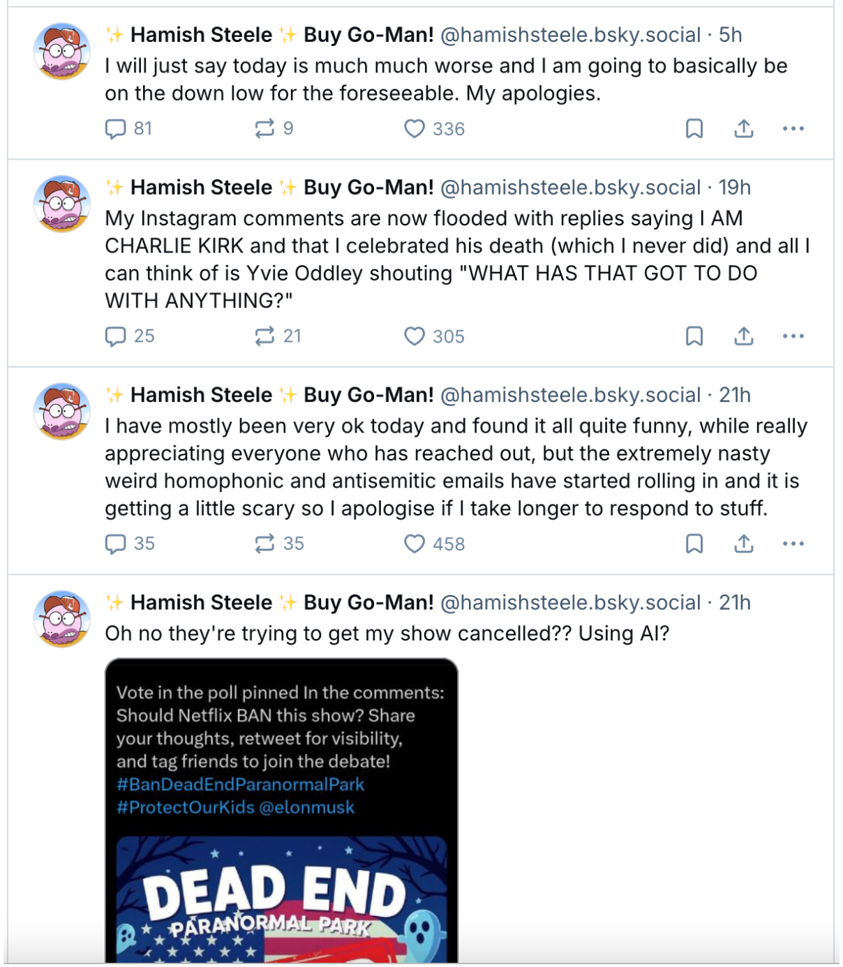 As the controversy exploded, the show’s creator, Hamish Steele, took to the alternative social media platform BlueSky to share his perspective. Initially, he seemed to take the sudden, bizarre turn of events in stride. “It’s probably going to be a very odd day,” he posted, firing back at the misinformation by clarifying, “It’s all lies and slander! Netflix is NOT promoting at the moment!” He later added that he had “mostly been very ok today and found it all quite funny, while really appreciating everyone who has reached out.”