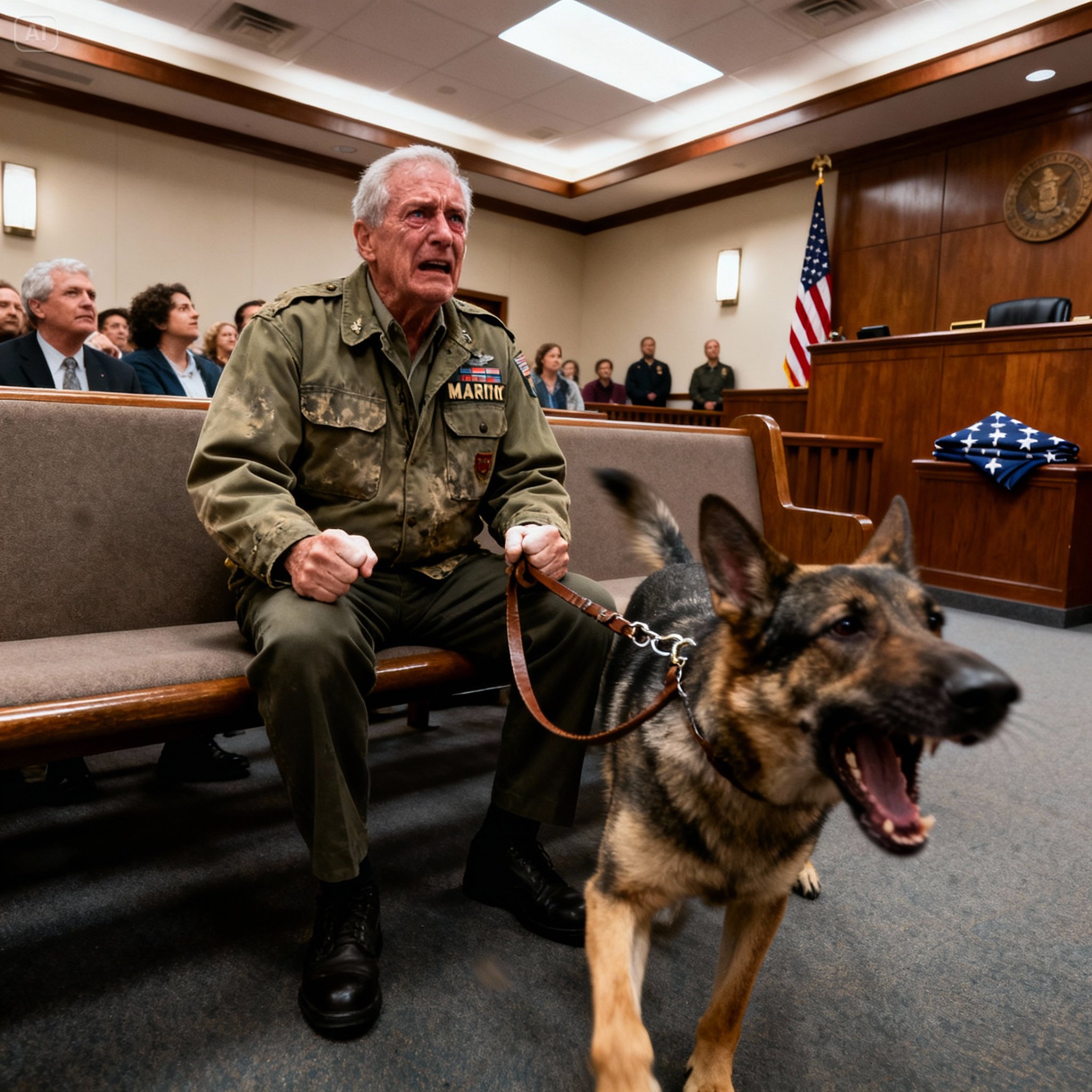 The German Shepherd’s coat was a mix of sable and gray, his muzzle dusted with the silver of age. He sat at perfect attention, his head high, his golden-brown eyes shining with an unnerving intelligence in the dim courtroom light. He did not whimper. He did not stir. He simply stared, his gaze locked on Laura with an intensity that transcended a mere animal’s devotion. It was the look of a soldier watching his commanding officer, his brother-in-arms, be condemned by a world that did not understand their bond.