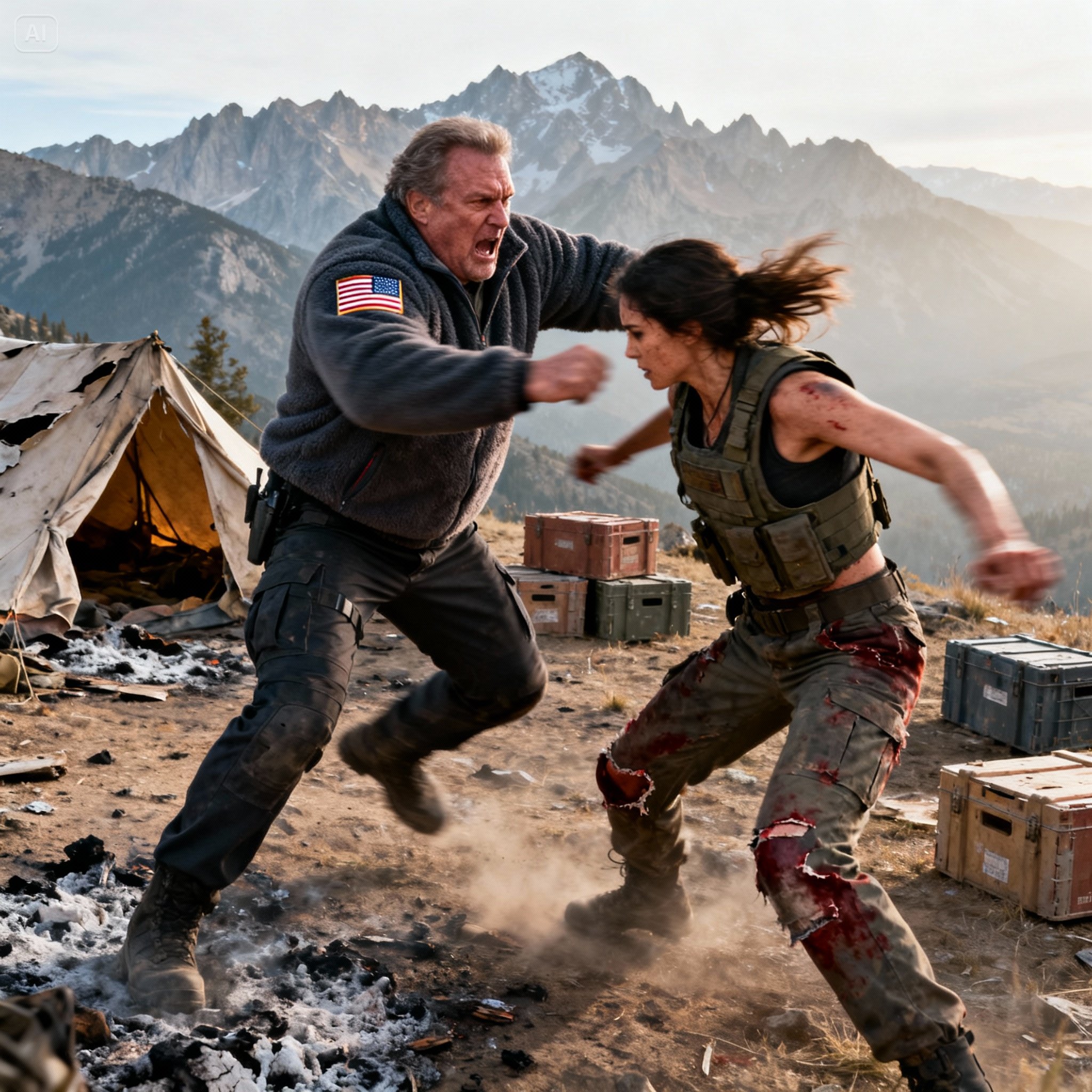 They slipped and slid in the ash and dirt of the clearing, their bodies slamming into crates and tent poles. He grabbed the torn strap of her vest and tried to throw her to the ground, but she turned with the motion, rolled through it, and used his own pull to unbalance him. They both staggered and fell near the very edge of the ridge—the same edge he had thrown her from the night before.