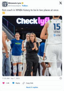 While Reeve handled the situation with biting wit, her organization, the Minnesota Lynx, chose to lean into the humor of the moment. Instead of issuing a formal correction, the team’s social media account saw an opportunity for some lighthearted trolling. In a playful post on X, the team announced that Reeve had become the “first coach in WNBA history to be in two places at once.”