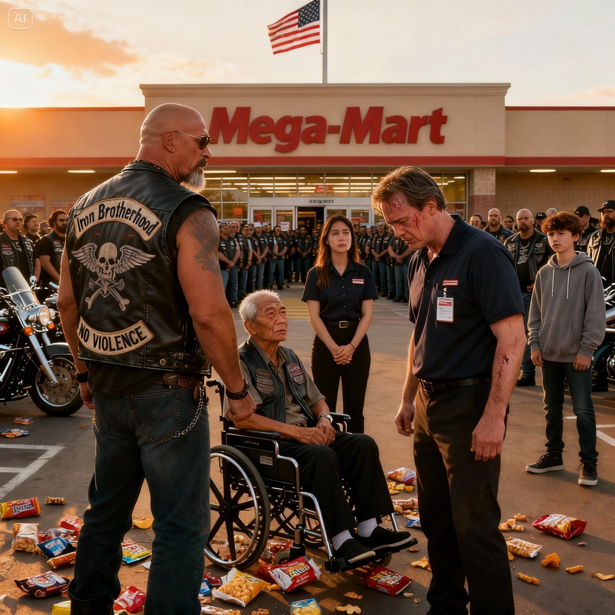 Three hundred bikers, dressed in vests bearing the “Iron Brotherhood” patch, walked into the Mega-Mart in a tight formation. The sudden, silent invasion sent customers scattering. Employees froze, terrified.