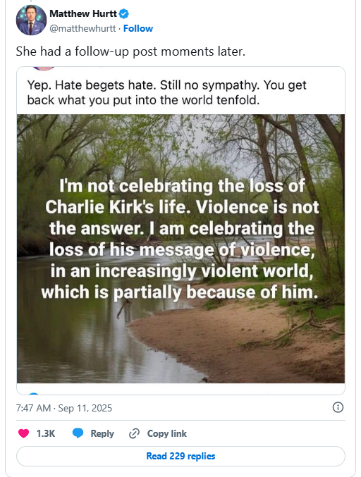 The controversy began with a chilling, though ultimately false, report of the assassination of prominent conservative commentator Charlie Kirk. In the immediate aftermath of the initial news breaking, Sosh-Lightsy took to her personal Facebook page to share her thoughts. Her comments, which were quickly captured in screenshots and circulated widely across various platforms, struck many as deeply unsettling. In one post, she allegedly wrote, “Looks like ol’ Charlie spoke his fate into existence. Hate begets hate. ZERO sympathy.” In a follow-up post, in agreement with a meme related to Kirk, she doubled down, stating, “Yep. Hate begets hate. Still no sympathy. You get back what you put into the world tenfold.”