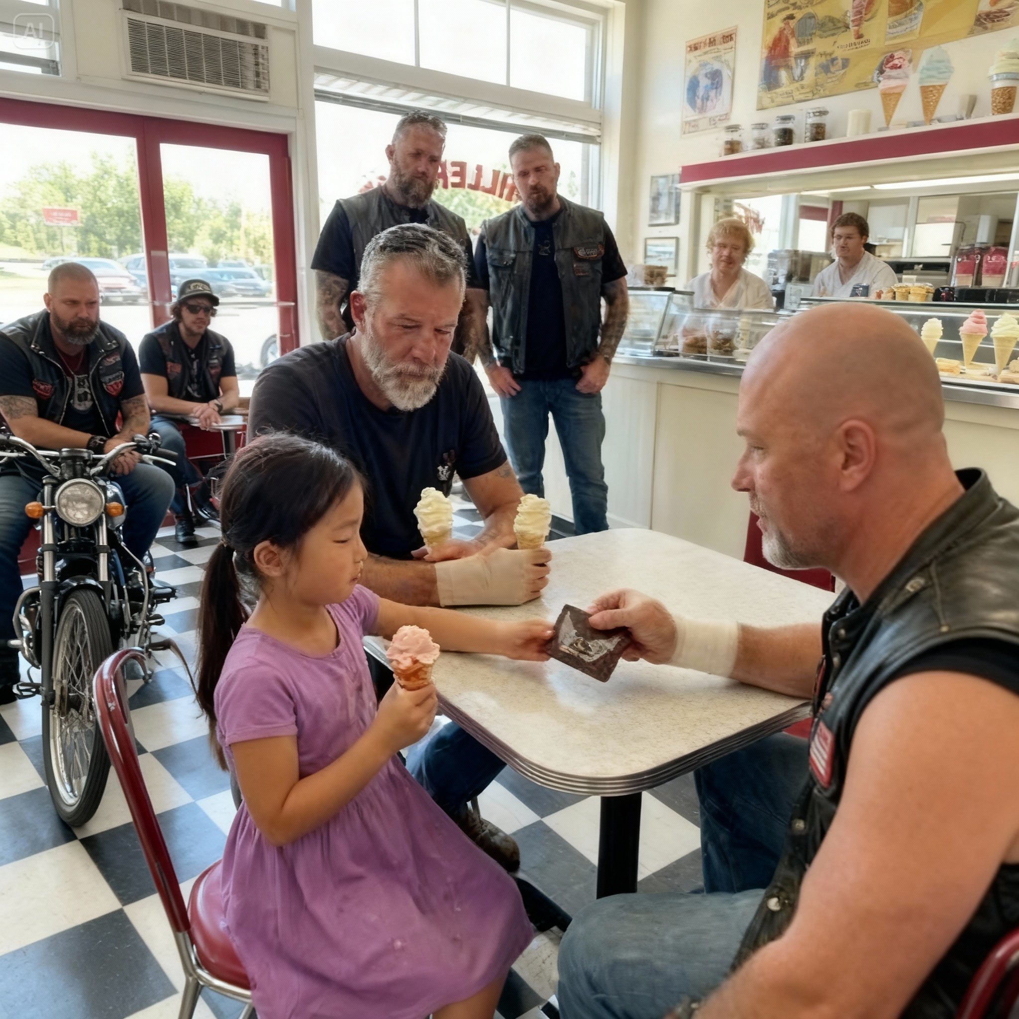 This wasn’t a story about bikers or ice cream; it was a testament to the power of observation and the courage to act. It proved that heroism isn’t about being big or strong or fearless. It’s about seeing what needs to be done and choosing to do it, even when you’re small, even when you’re scared, and even when the person who needs help is the scariest person in the room.