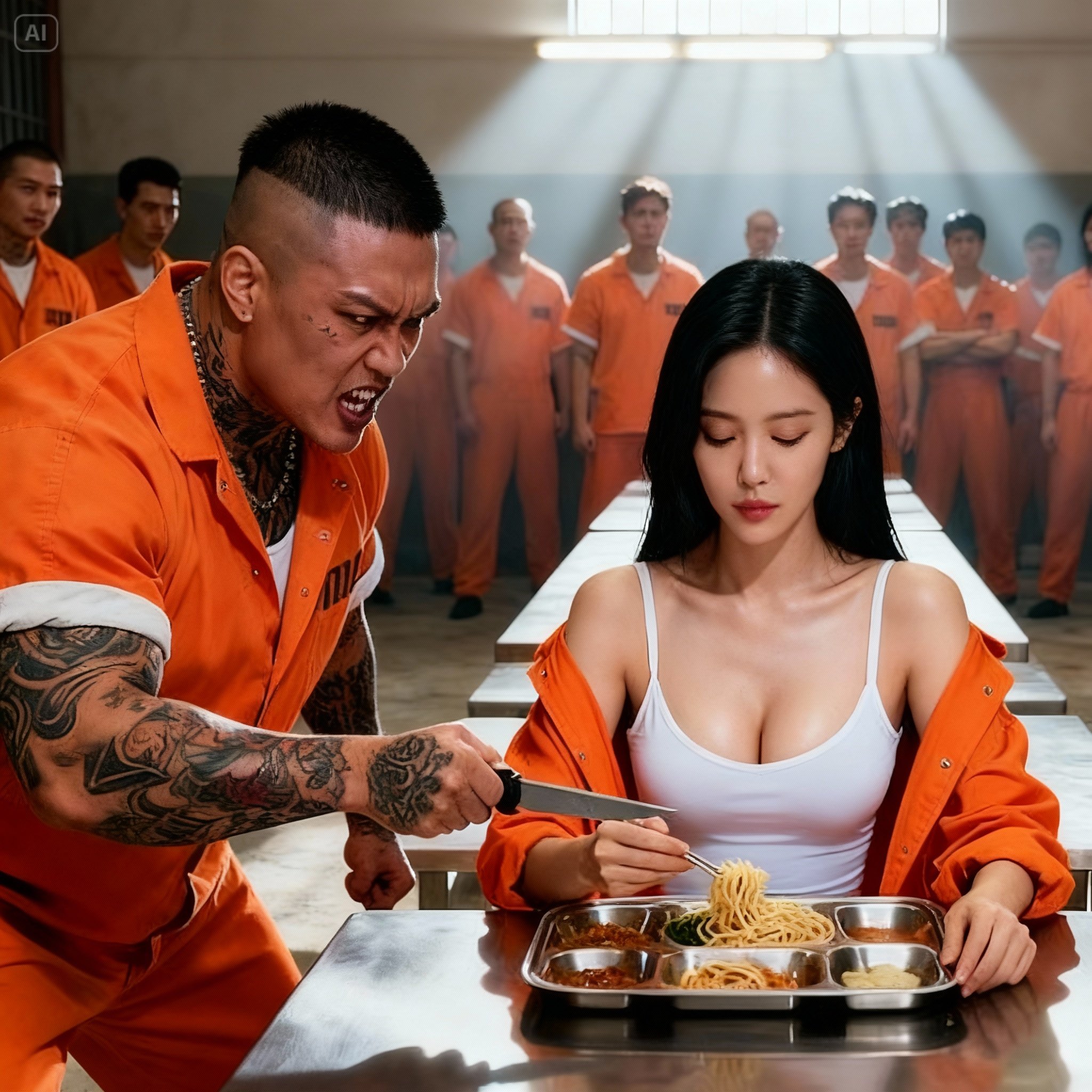 The door burst open, and three hulking inmates shuffled in, their eyes predatory.