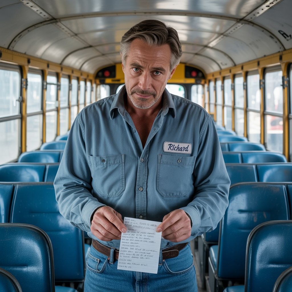 Richard sat in the empty bus, staring at the note. He was torn. On one hand, he knew he had to protect the child’s privacy. On the other, he was now holding evidence that Emily was in real trouble. He replayed the mornings in his head: the tears, the hunched shoulders, the way she avoided everyone’s gaze. It wasn’t just sadness—there was fear.