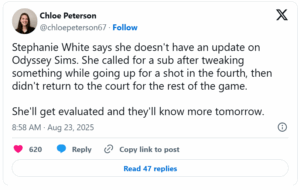 It was against this grim backdrop that the news of Odyssey Sims’s injury broke, serving as the final straw for a fanbase that has watched their team crumble before their very eyes. Sims, a veteran guard recently signed to a hardship contract to fill the gaps left by the countless injuries, suffered a groin injury in her most recent game. While the injury is not thought to be career-threatening, her name on the report was enough to send fans over the edge. The outrage immediately spilled onto social media, with a single, viral comment crystallizing the collective frustration: “The whole medical training staff needs to be replaced next season.” The message, which quickly gained traction and was shared across platforms, captured the raw emotion of a fanbase that no longer believes their team is suffering from a string of bad luck: “By the end of the season, 30 different players will have suited up for the Fever.” Instead, they believe it is a systemic failure, a problem that is either being ignored or handled with gross incompetence.