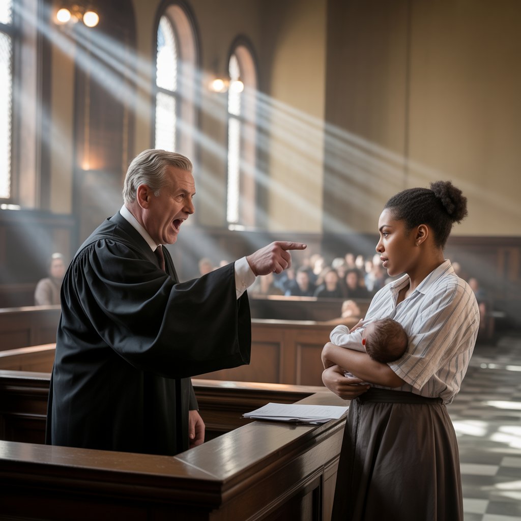 “Get out!” Judge Harold Brenan’s roar pierced the courtroom, startling lawyers and journalists alike. His face, flushed with rage, pointed at Sarah Jenkins, 23, standing near the witness stand. Her waitress uniform, still marked by coffee stains from her morning shift, clashed with the cold marble of the courthouse. She hadn’t imagined she would become the center of a scandal that would shake the foundations of the justice system. “Security!” the judge bellowed, his voice breaking with fury.