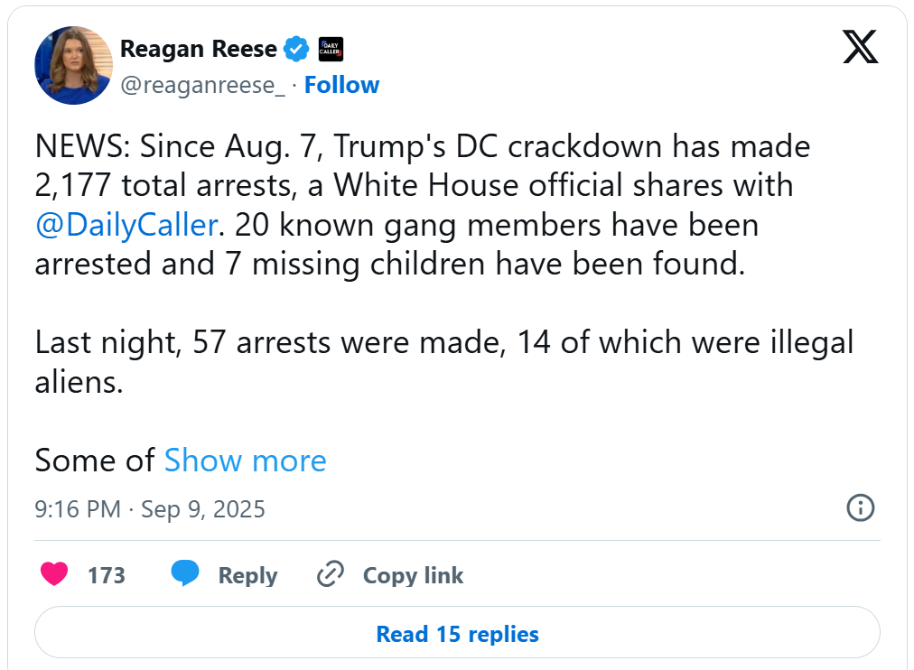 The official then touted the results of the president’s crackdown in the nation’s capital. Since its start, she announced, a staggering “2,177 total arrests have been carried out.” She provided specific examples of the program’s success, including the apprehension of “20 known gang members and tracked down 7 missing children.” The results, she said, were a clear sign that the president’s plan was working. She even provided a stunning, real-time update from the previous night’s operations, where “officials made 57 arrests, including the apprehension of 14 illegal aliens.” She spoke of the arrests of individuals on warrants for “assault with the intent to kill” and “armed carjacking,” statistics that painted a vivid picture of a city being reclaimed from the brink of chaos.