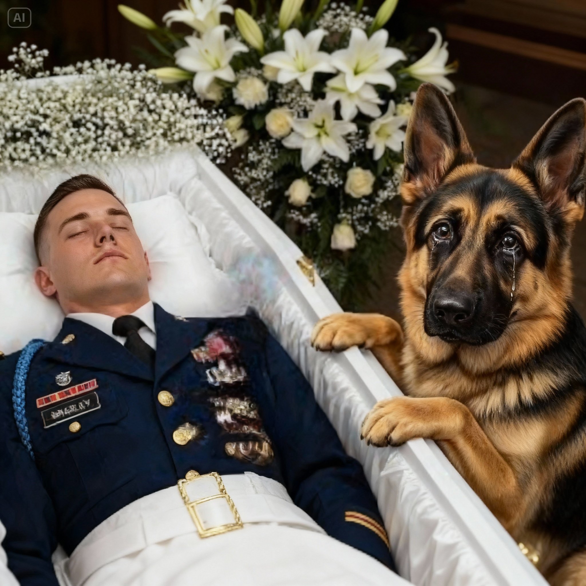 I stood beside the coffin, my tears falling silently onto the polished wood. My gaze kept returning to Shadow—that profound, unwavering loyalty was almost unbearable to witness. He was a sentinel of pure grief.