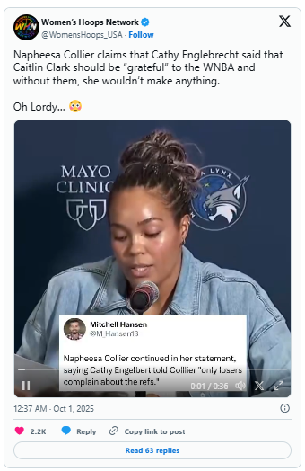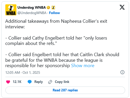 What followed, according to Collier, was a statement so cold, so corporate, and so utterly revealing of the Commissioner’s alleged mentality that it instantly turned the professional relationship between the WNBA and its players into a public war.