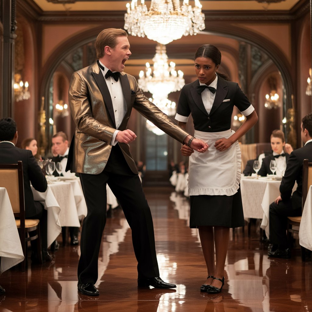 The booming voice echoed across the elegant dining hall of the Lexington Hotel in New York City. All eyes turned toward the source of the commotion: billionaire investor Richard Coleman, known for his ruthless business tactics and arrogance. He sat in a reserved corner, his tailored gray suit sharp against the golden glow of chandeliers, his Italian leather shoes polished to perfection—though a tiny drop of red wine had just landed near the sole.