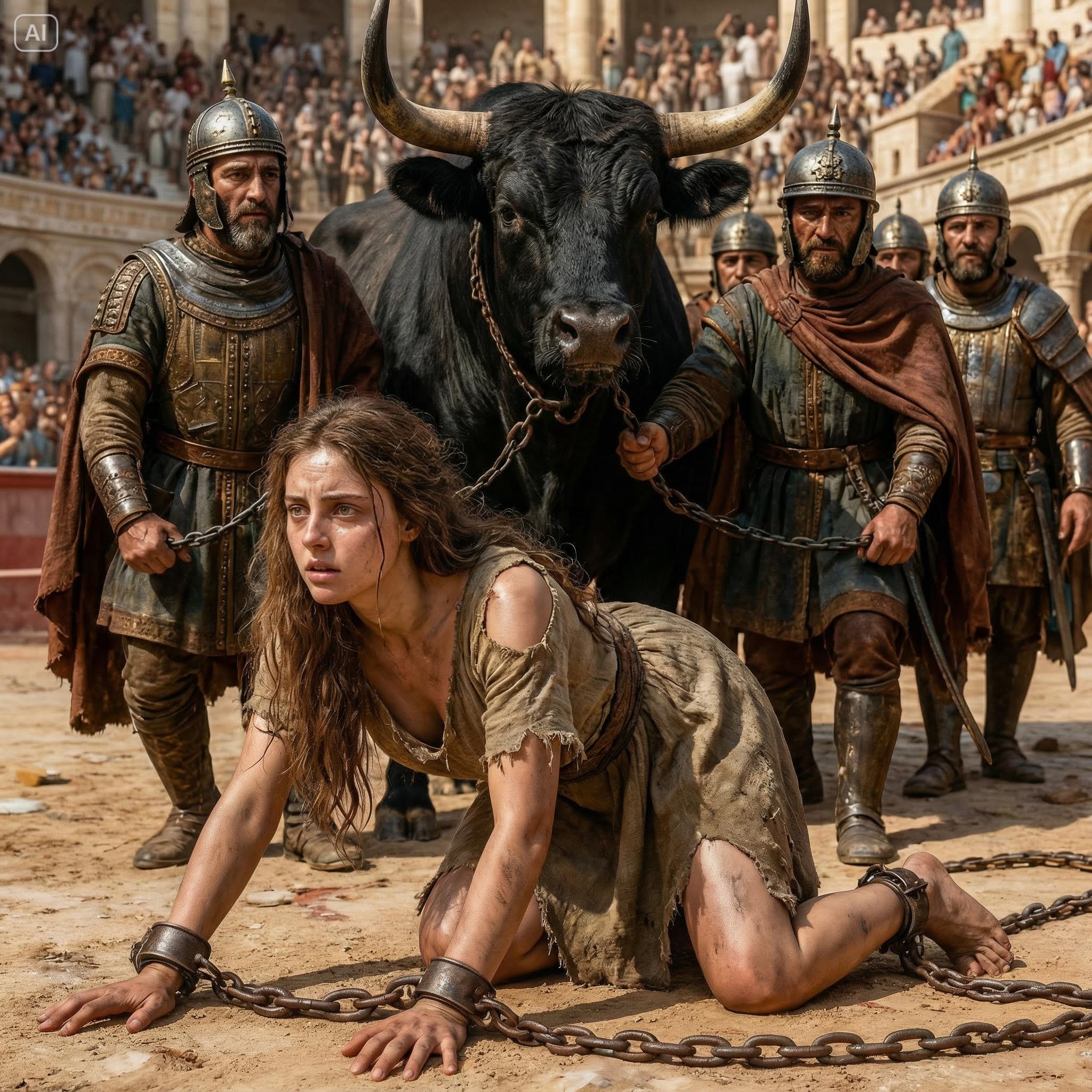 As the shadow of the bull falls over her trembling back, the roar of the crowd reaches a fever pitch. And in that moment, civilization dissolves. There are no Romans here. No Christians. Just a mob of fifty thousand animals, watching a woman waiting to die.