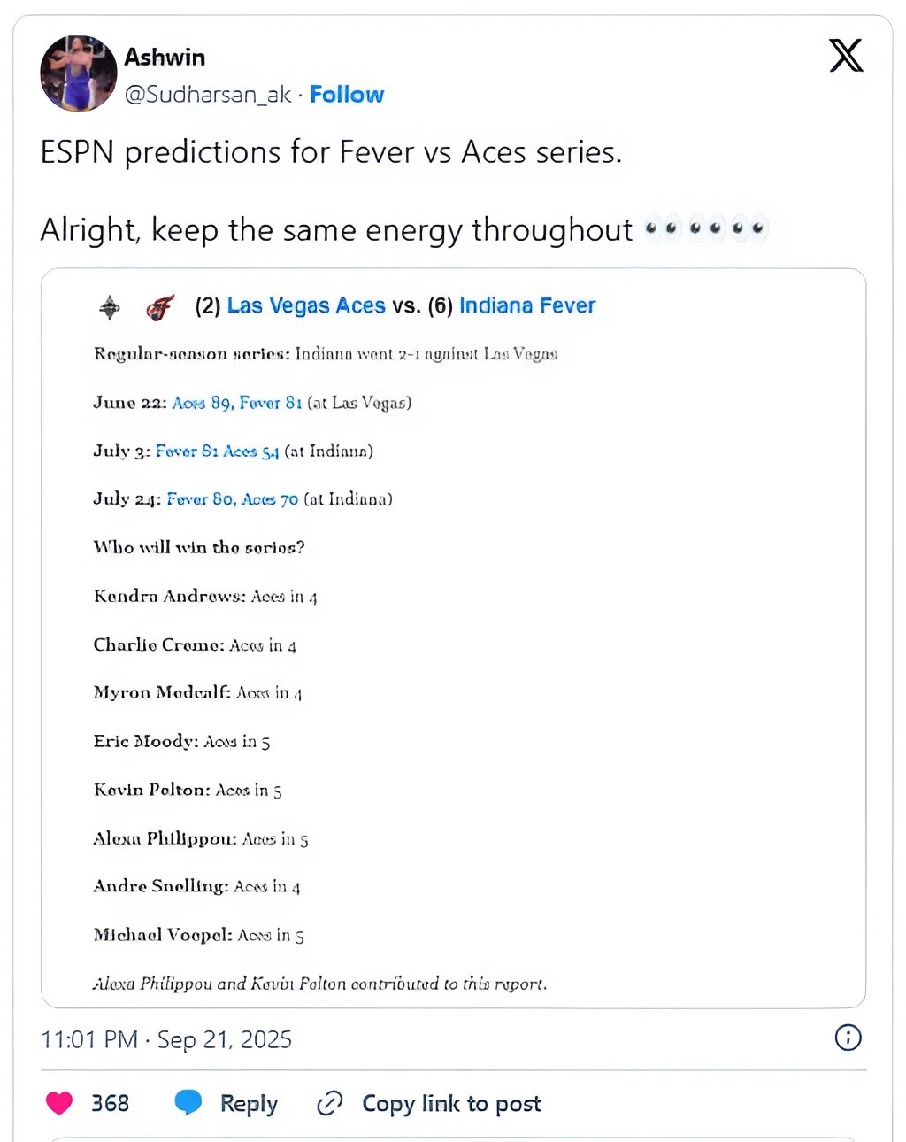 In the end, this is a story about more than just a playoff game. It’s a story about the changing of the guard, about a new generation of fans who refuse to be told what to believe. It’s about the power of the underdog and the joy of proving the experts wrong. The eight WNBA insiders may have predicted a different outcome, but the Indiana Fever, and the legion of fans who believed in them, had the final say. The Aces may still be the favorite to win the series, but the narrative has been stolen, and the real victory belongs to the team that dared to defy expectations and the fans who demanded to be heard.