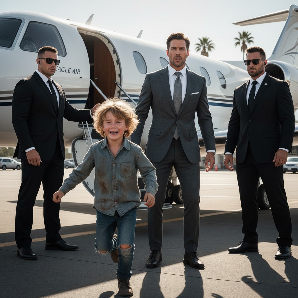 Yet, Mallory, a man who lived by ruthless logic, didn’t move. The desperate urgency in the kid’s voice was sharp, and for the first time in years, the billionaire hesitated. The bodyguards pulled Ethan farther, but his words echoed across the tarmac, demanding to be heard.