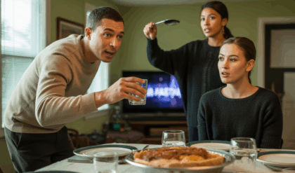 Valentina was serving red wine at their table when she made a clumsy mistake. Her foot caught the edge of the tablecloth, and a few drops of ruby liquid stained the pristine white linen.