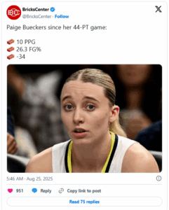 The mockery began in a sarcastic tone. “When isn’t she getting sympathy?” wrote one user, a comment that quickly went viral. It was followed by a flood of similar posts, each one more brutal than the last. “She’s averaging 10 ppg, a truly record-shattering performance,” wrote another, the sarcasm dripping from every word. The public takedown was relentless. Clips of her missed shots were shared and re-shared, her every misstep on the court was dissected and analyzed, and her past accomplishments were held up as proof of her current failures. The digital mob was merciless, and for a player who was once universally beloved, the shift in public perception was nothing short of brutal.