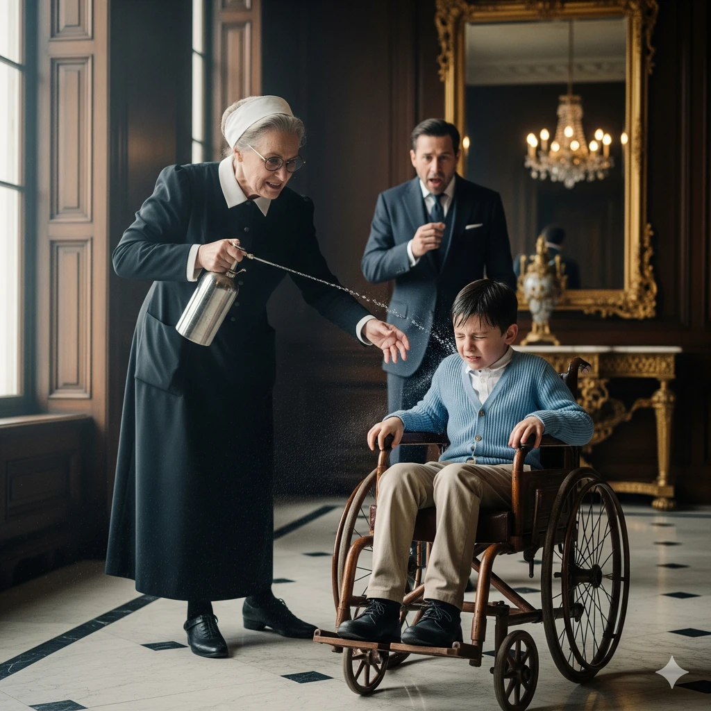 Dolores Herrera, the nanny they had hired after a meticulous screening process, stood over Santiago’s wheelchair, a garden hose in her hand, drenching the boy in a cascade of icy water. Her face, usually a mask of gentle smiles, was twisted into a grotesque sneer. “You think you’re so special, don’t you?” she spat, her voice a venomous hiss. “A little prince in his castle. But you’re just a burden, a problem your parents have to hide away.”