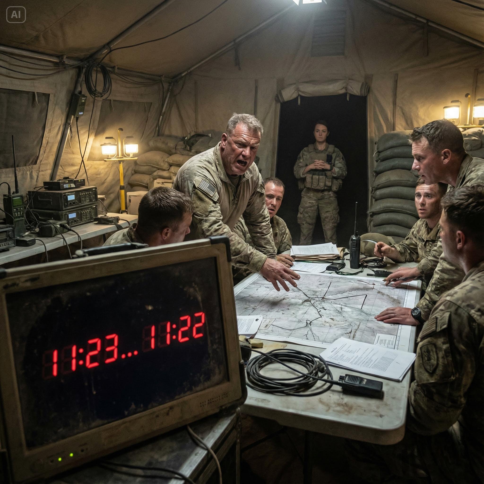 Major Hayes stands in the center of the storm. He is a brick wall of a man, head shaved to the skin, a chest full of ribbons that tell the story of twenty years of bad places. He slams both massive fists onto the tactical table. The wood groans.