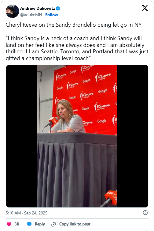 Cheryl Reeve, the esteemed coach of the Minnesota Lynx, and a long-time peer and rival of Brondello’s, was quick to weigh in on the situation. In a candid interview, Reeve didn’t just offer platitudes; she delivered a full-throated endorsement that went far beyond mere respect. She tipped Brondello not just for another head coaching job, but specifically to lead one of the new WNBA expansion teams. “I think Sandy [Brondello] is a heck of a coach, and I think Sandy will land on her feet like she always does, and I am absolutely thrilled if I am Seattle, Toronto, and Portland that I was just gifted a championship-level coach.”