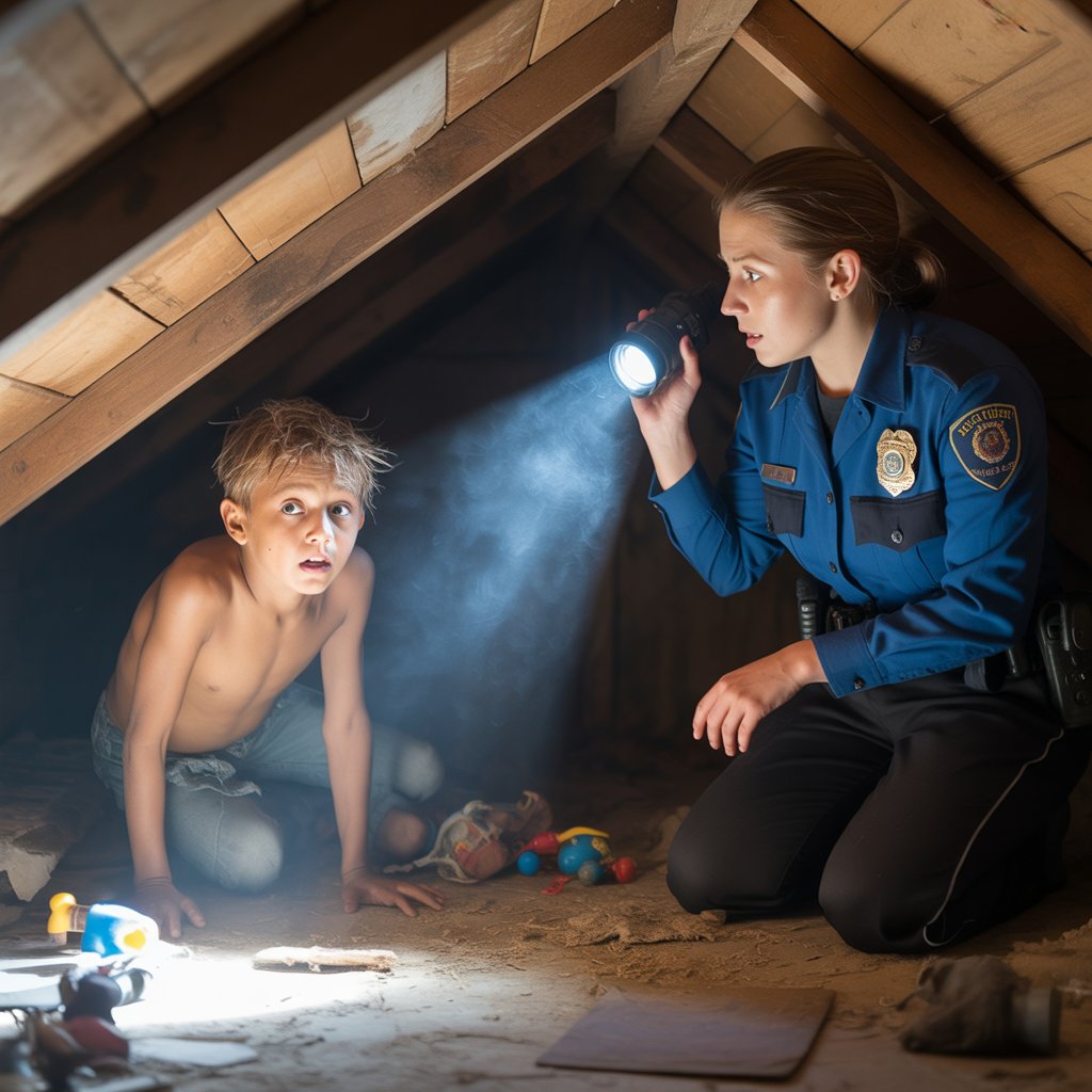 The climb into the attic was a descent into a forgotten hell. The air was thick and stagnant, tasting of dust, decay, and despair. As Linda’s flashlight beam cut through the oppressive darkness, it landed on a small, frail figure huddled in the far corner. It was Emily. She was shockingly pale and thin, her hair matted, her clothes little more than rags. A heavy chain snaked from a thick leather cuff on her ankle to a rusted iron ring bolted to a wooden beam. She blinked against the light, her eyes wide with a mixture of terror and disbelief, like a creature of the dark suddenly exposed to the sun.