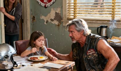 His small, trembling arms wrapped around my vest, his fingers gripping the “President” patch like it was a lifeline. His heart was hammering against my back, a frantic drumbeat against the steady, pounding rhythm of my Harley.