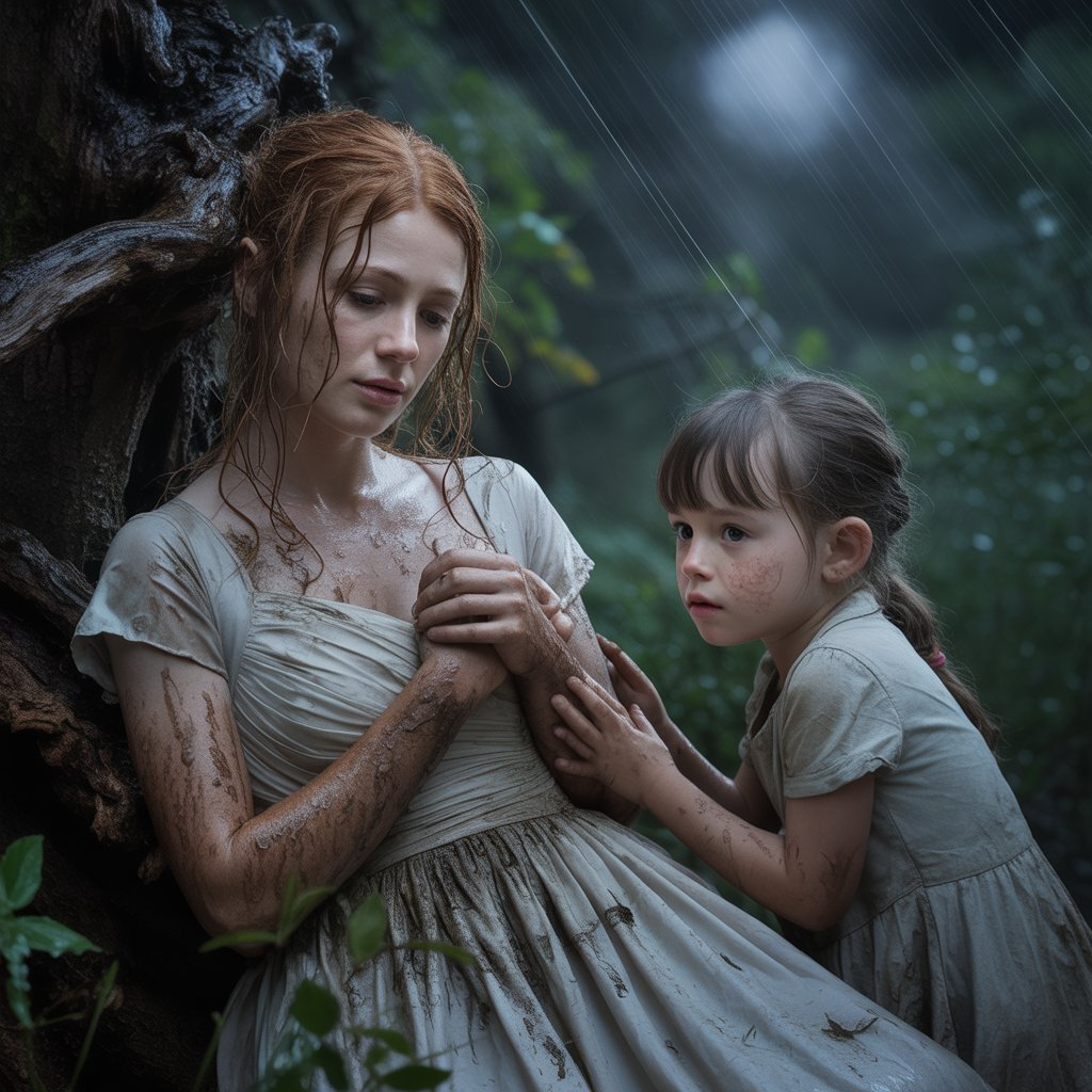 She ran without thought, without direction, her only instinct to put as much distance as possible between herself and the town that had so swiftly and so cruelly condemned her. The sky, which had been a brilliant, unforgiving blue, began to weep, the rain coming down in thick, gray sheets, plastering her expensive gown to her skin, washing the dust of Dustell from her bare feet.