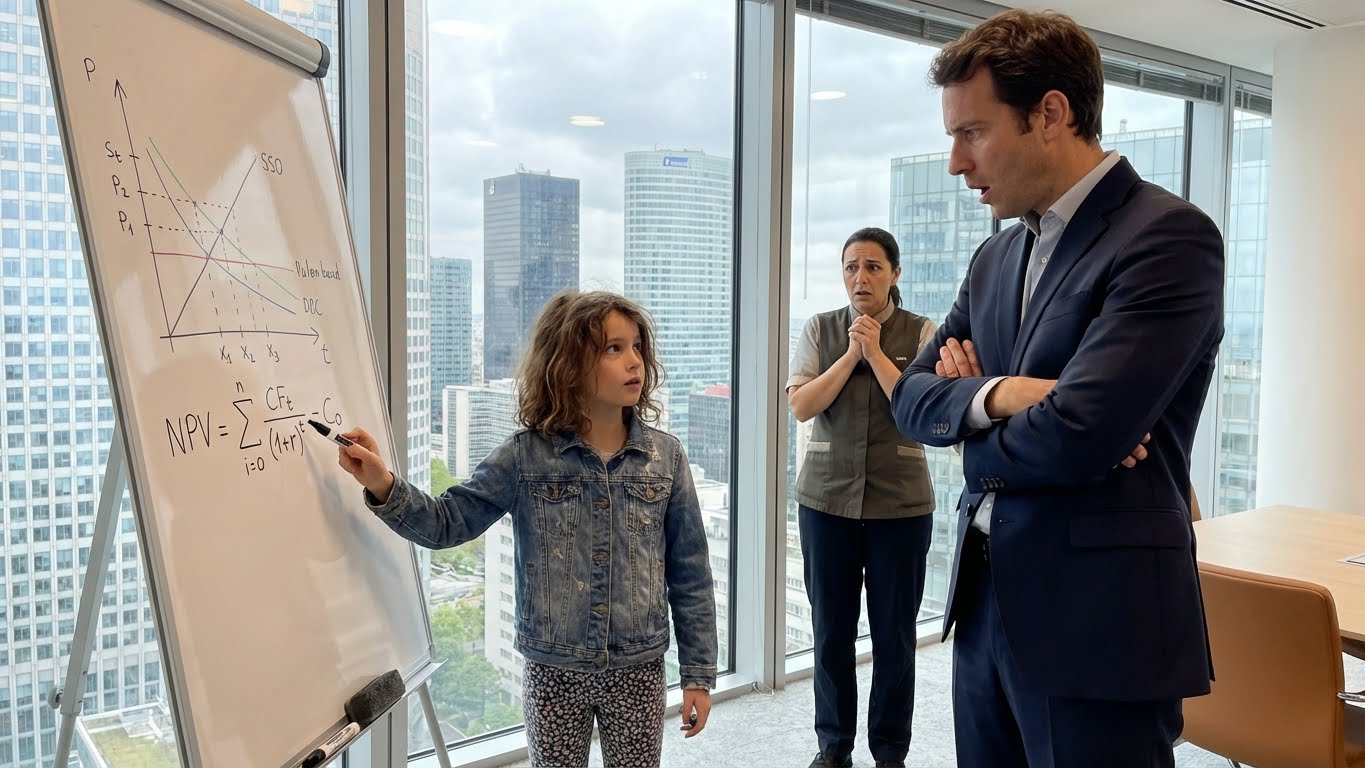 — “Pardon ?” dis-je, un sourire méprisant aux lèvres. Je me levai lentement, dominant la pièce de toute ma hauteur. “Cette équation représente le travail des esprits les plus brillants de la finance française. Et toi, une enfant qui devrait jouer à la poupée, tu penses pouvoir les corriger ?”
