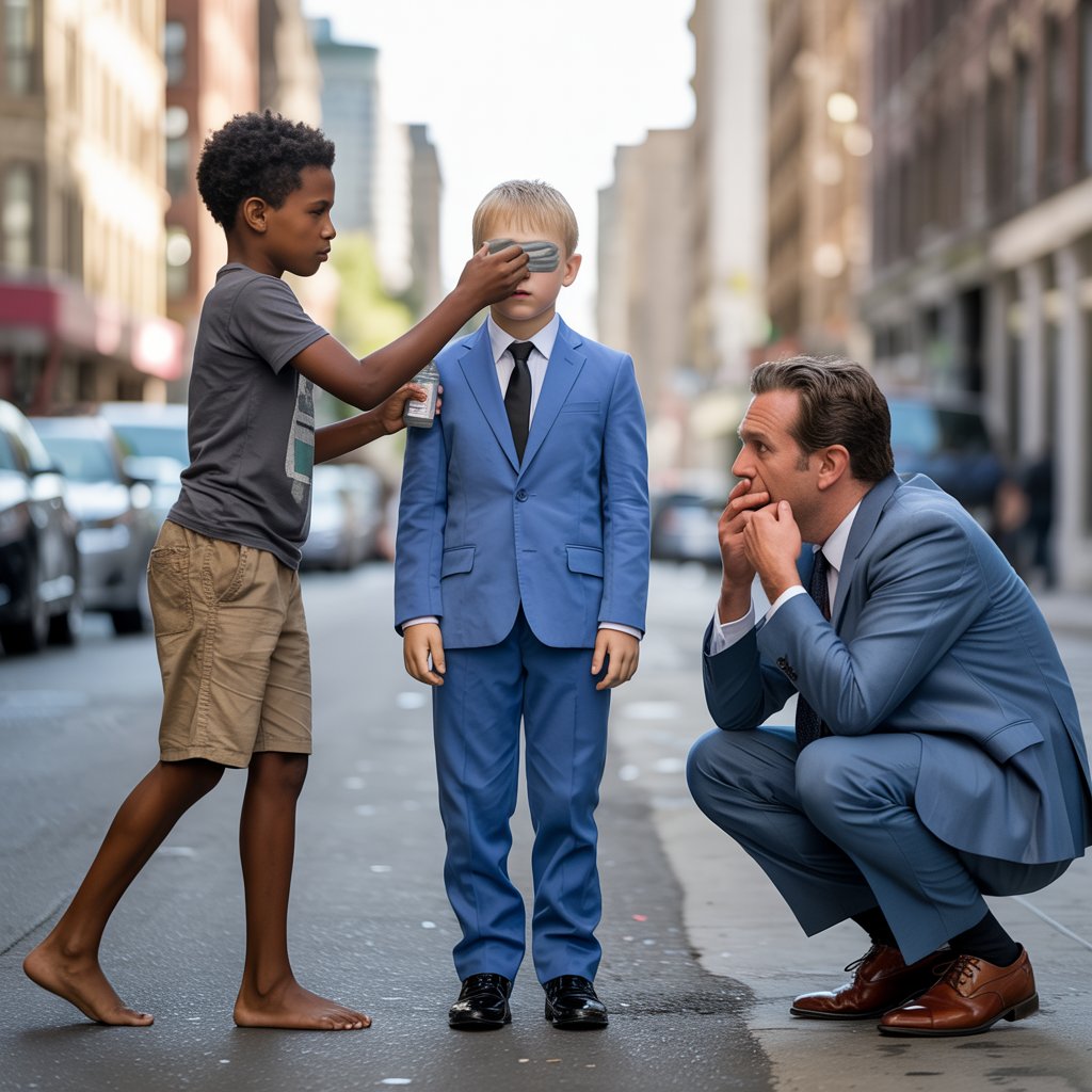 Michael watched as the barefoot boy led his blind son a few steps down the sidewalk, stopping where the light fell sharp between two tall buildings. Eli lifted Liam’s chin. “Look up. Feel that? That’s the street’s smile.”