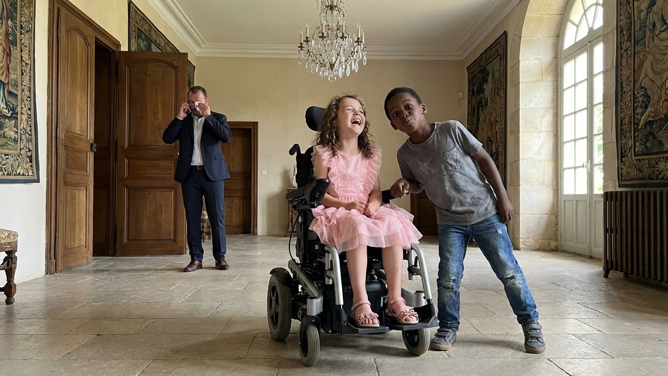 Il y a des enfants de l’école publique du quartier, où Chloé est désormais scolarisée. Une école où la diversité est la norme, et où son fauteuil est juste un accessoire cool. Il y a aussi des enfants de la cité.