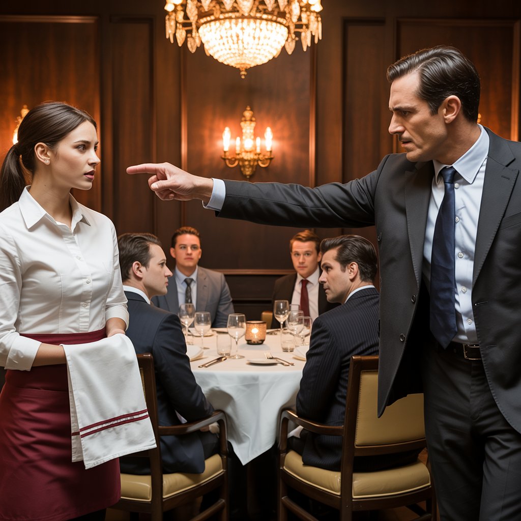 That’s when a waitress, moving with quiet efficiency, calmly set down her silver tray. She stepped forward.