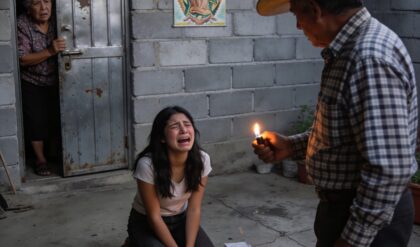 “What is he doing?” the woman in front of me whispered.