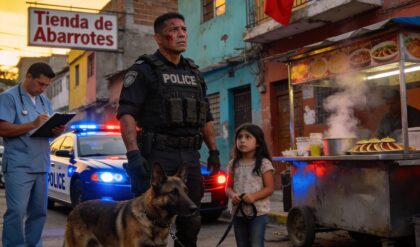 Me quedé en silencio. Mi uniforme oscuro contrastando con el traje de lana fría del guardia. No discutí. Simplemente, mis ojos buscaron los de la niña, pasando por encima del hombro del guardia.
