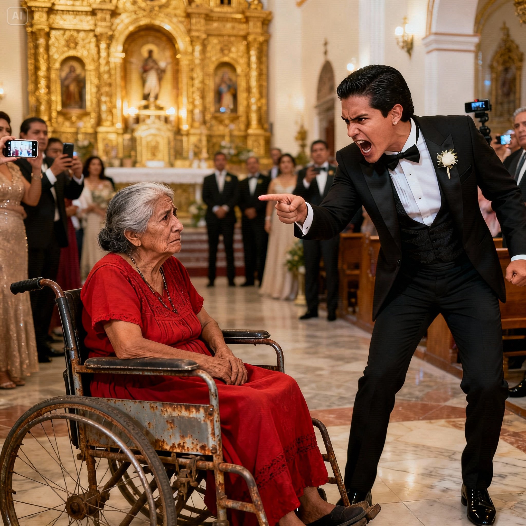 Estaba sentada en esa maldita silla de ruedas que rechinaba cada vez que llovía. Llevaba puesto su “mejor vestido”, una prenda de tela roja sintética que ella misma había cosido en su vieja máquina Singer durante las noches. Se había peinado el cabello canoso en un chongo apretado y, aunque intentaba sonreír, sus manos temblaban sobre sus rodillas inmóviles.