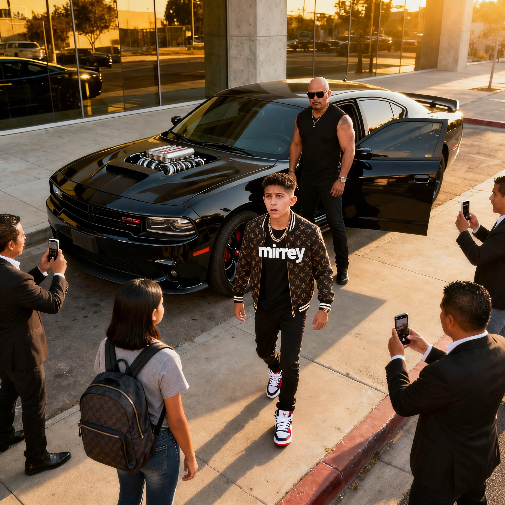 No fue un sonido normal. Fue un bramido gutural, mecánico, profundo. Un Dodge Charger Hellcat negro mate derrapó en la esquina, quemando llanta y dejando una nube de humo blanco que olió a caucho quemado y testosterona. El coche se montó en la banqueta, obligando a Bryce a saltar hacia atrás como un gato asustado.