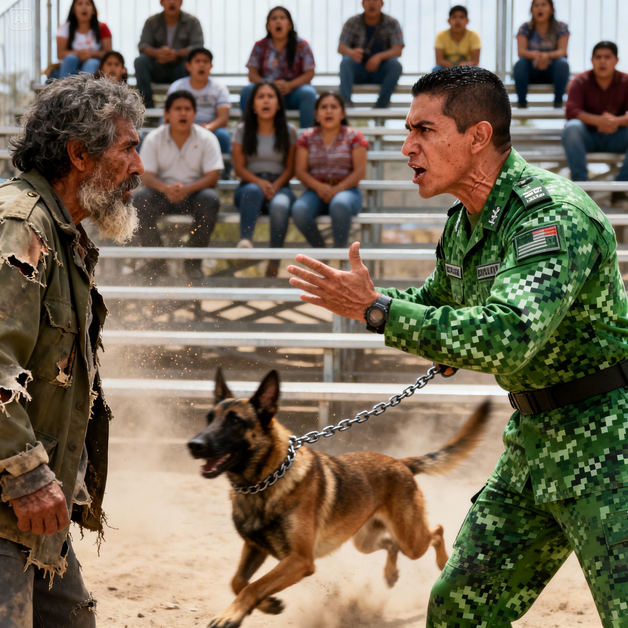 —¡Aléjese del animal! —ladró Mendoza, recuperando su tono de mando, aunque le faltaba la convicción de antes—. ¡Ese perro es propiedad del Ejército Mexicano y es extremadamente peligroso! ¡Usted está interfiriendo en un procedimiento oficial!