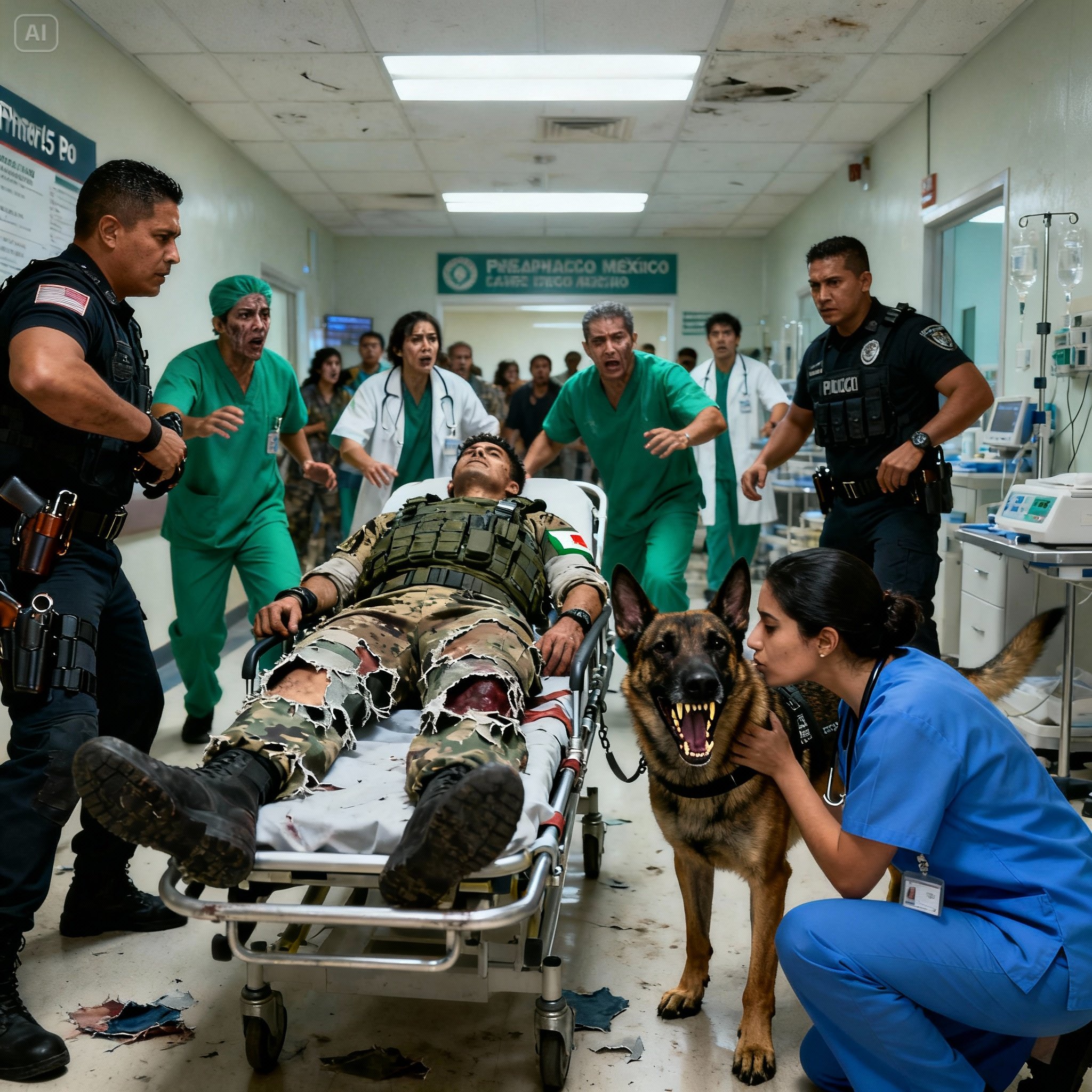 Tres guardias del hospital, hombres acostumbrados a lidiar con borrachos y familiares enojados, entraron con las manos en sus macanas. Al ver al perro, se detuvieron en seco. El animal giró la cabeza. Sus orejas se pegaron al cráneo. El lenguaje corporal era inequívoco: Modo de Combate.