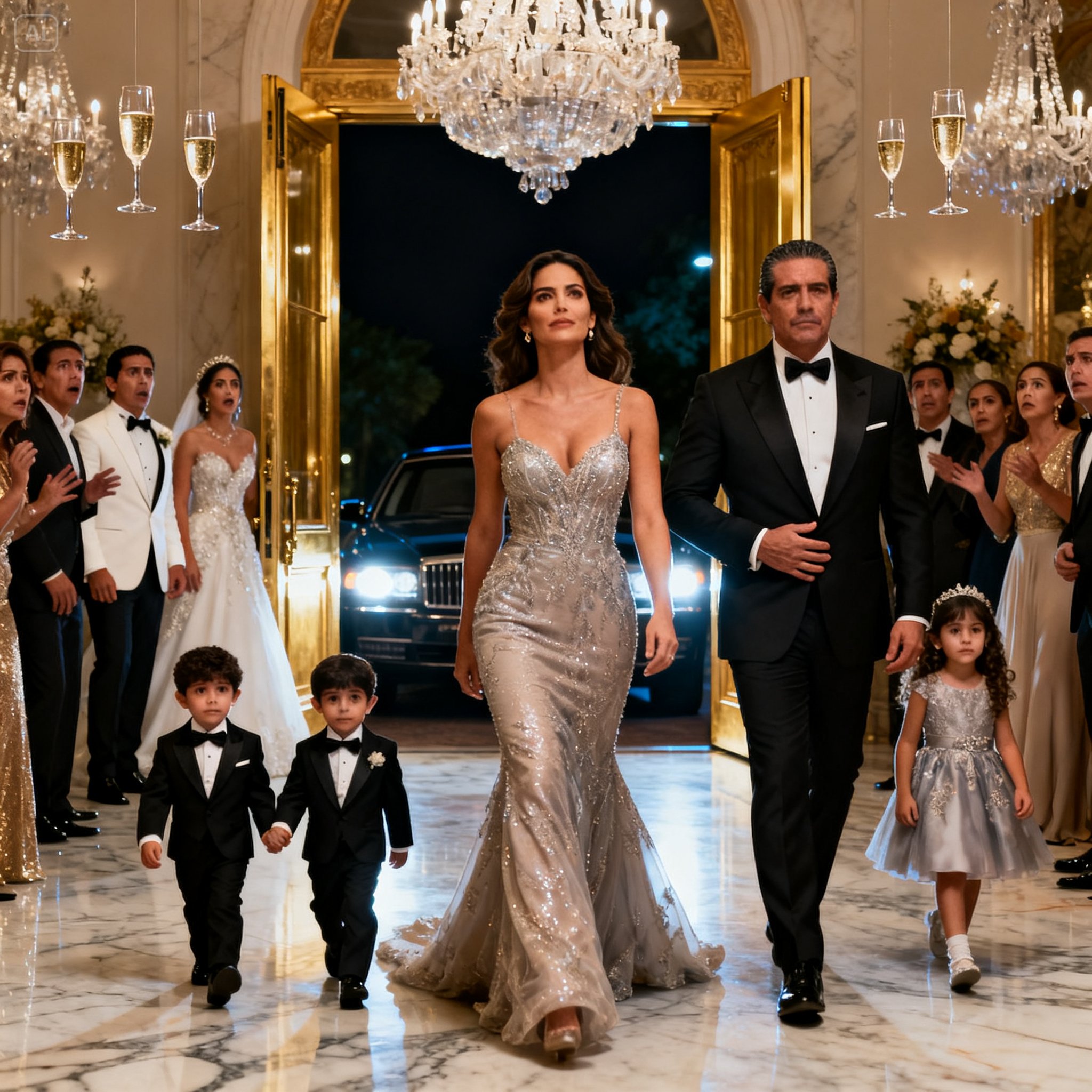 El Hotel Grand de la Ciudad de México no era simplemente un lugar para hospedarse; era un palacio moderno diseñado para deslumbrar a los más exigentes. Su salón principal, una joya arquitectónica más amplia que una cancha de fútbol, estaba flanqueado por imponentes columnas de mármol y candelabros que goteaban miles de cristales de Swarovski. Esa noche, cada centímetro del lugar había sido transformado no solo para una celebración, sino para un espectáculo mediático de proporciones épicas.