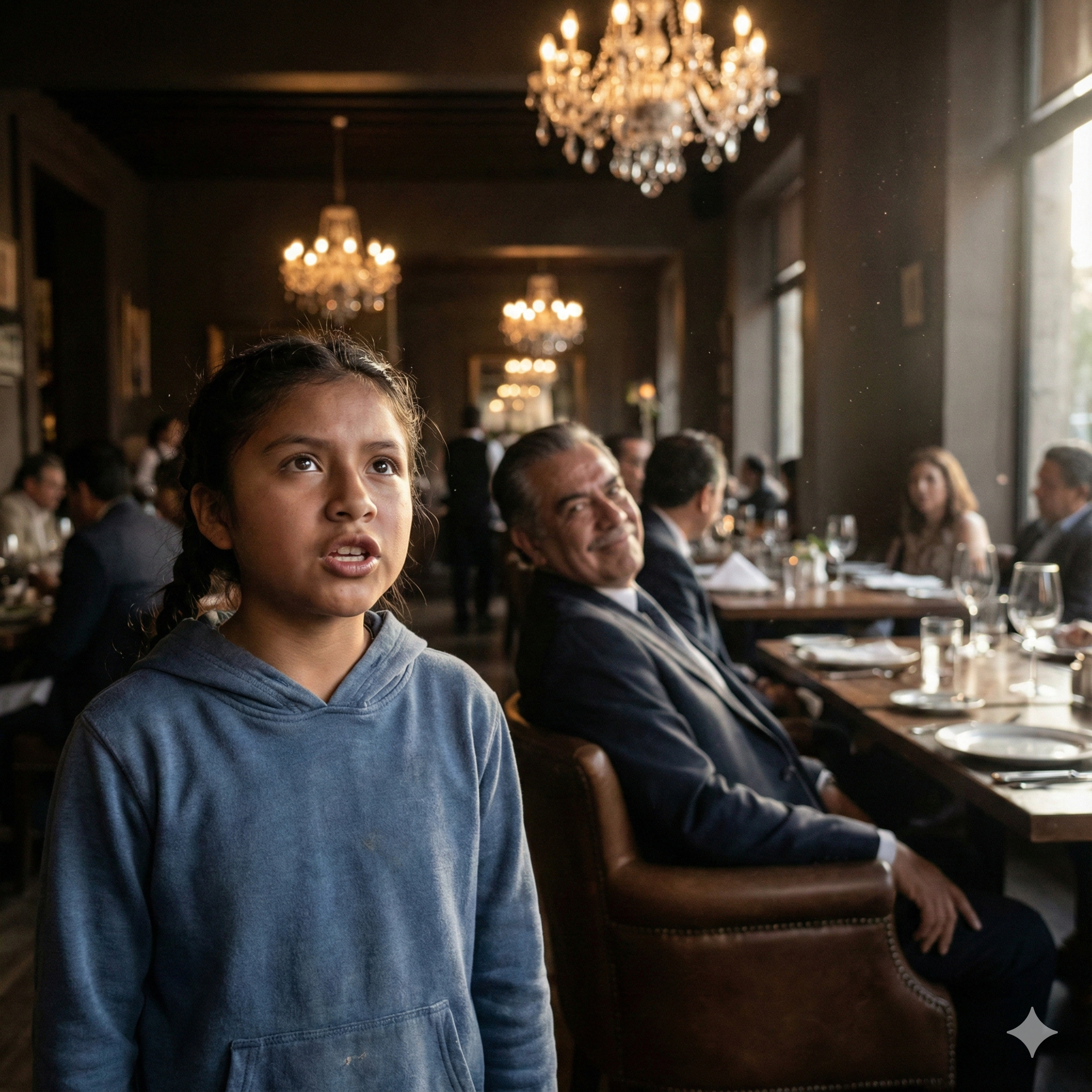 Pero esa noche, la regla se rompió. La señora que cuidaba a Valentina me canceló de último minuto. No tuve opción. Tuve que traer a mi hija de diez años al trabajo. La escondí en la bodega de servicio, sentada sobre una caja de refrescos con un libro viejo y la promesa de que, si se portaba bien, le compraría un tamal dulce al salir. —No hagas ruido, mi amor. Por favor —le supliqué antes de salir a la sala. Valentina asintió. Ella entendía. A sus diez años, tenía esa madurez triste de los niños que saben que el mundo es duro con gente como nosotros.