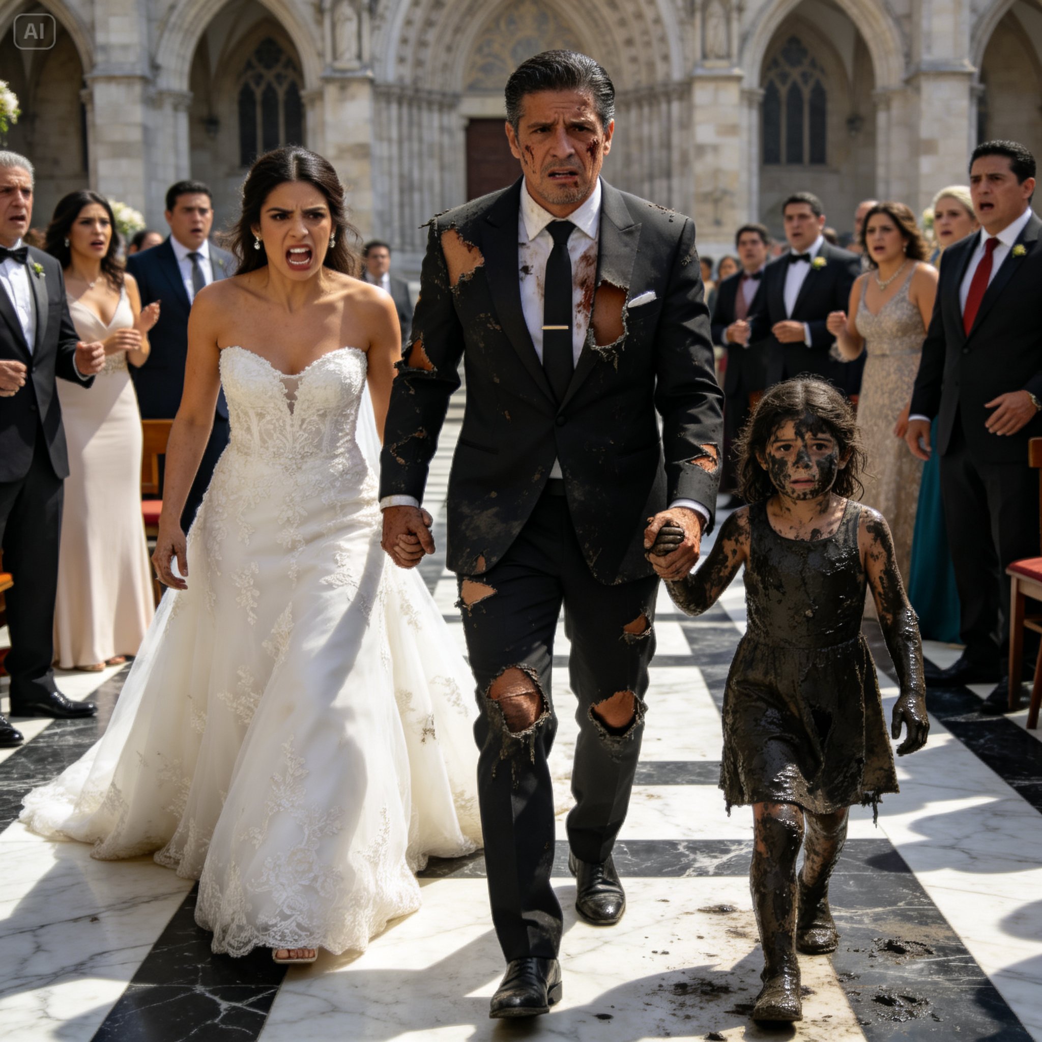La niña caminó por el pasillo central, dejando una rastro de suciedad sobre la alfombra de lujo. Los invitados soltaban gritos de horror, apartando sus vestidos de diseñador para no ser manchados. Isela, a mi lado, se puso rígida. Su mano, envuelta en encaje, apretó mi brazo con una fuerza antinatural. Sus uñas se clavaron en mi piel.