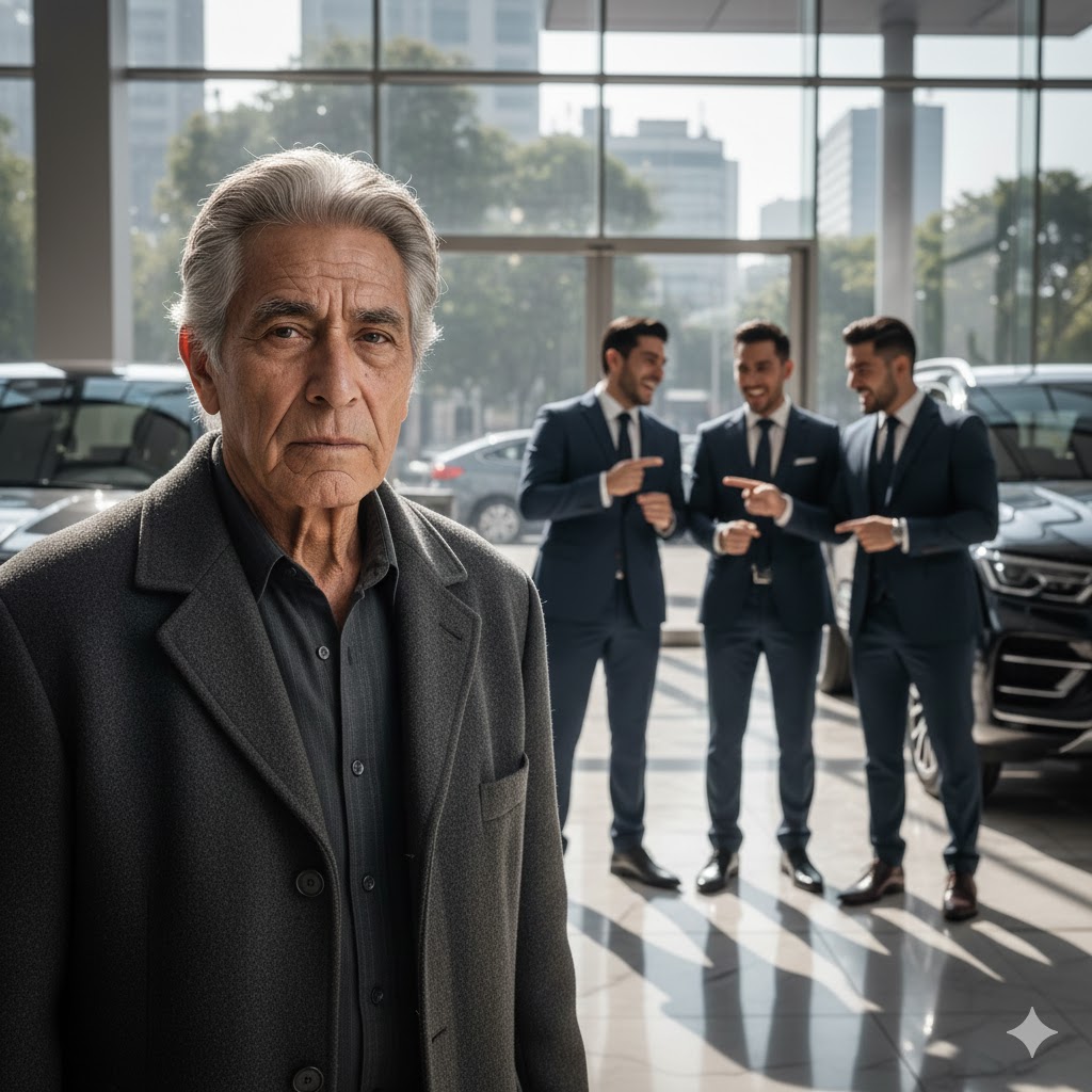 Varios vendedores, enfundados en trajes que gritaban exclusividad, lo midieron con la mirada. Para ellos, Natalio no era un cliente potencial; era un estorbo visual, alguien que seguramente se había perdido buscando una parada de autobús. Uno de ellos, un joven de cabello engominado, se acercó a un colega y, sin el menor recato, cuchicheó algo que terminó en una risa burlona.