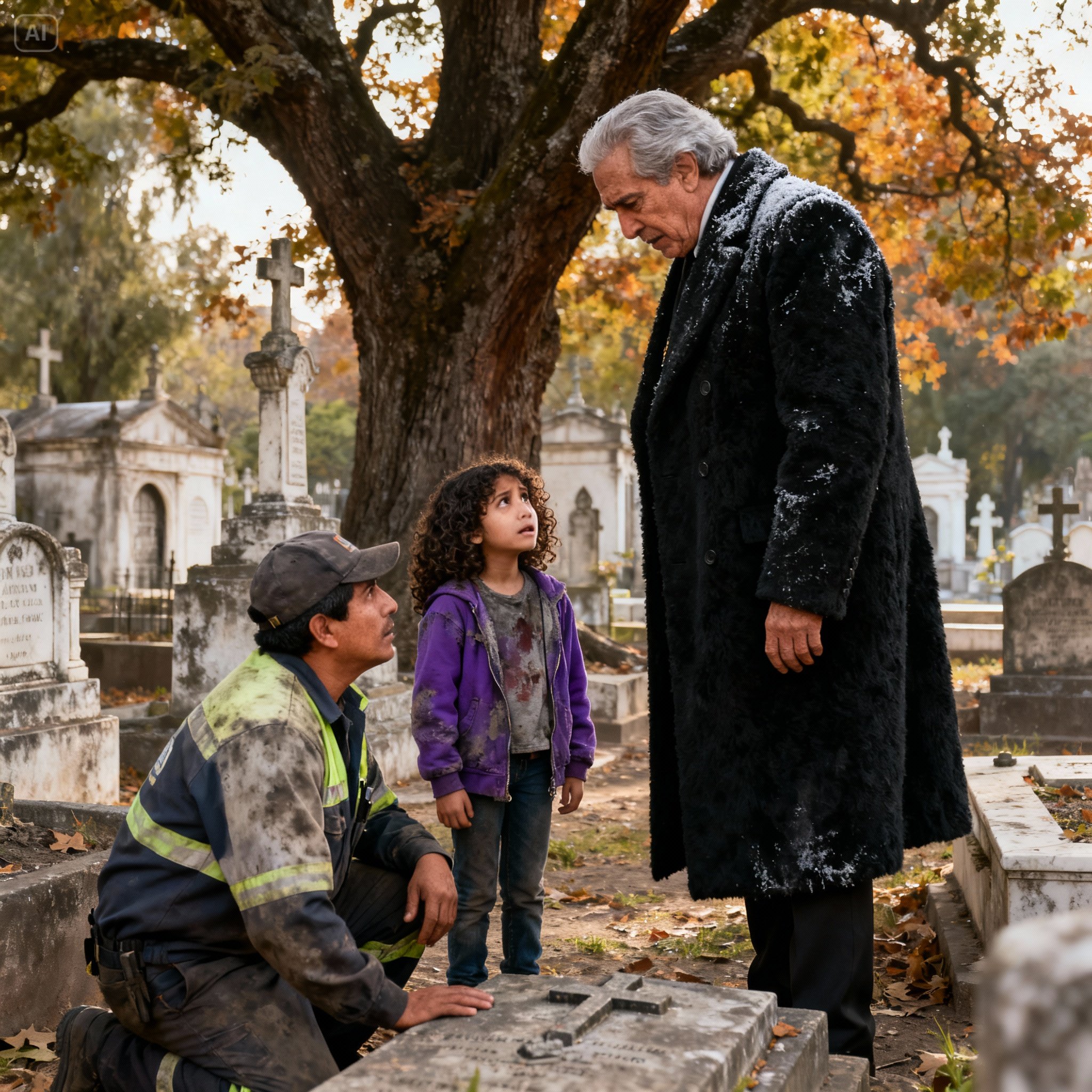 Lucía regresó corriendo, con las manos sucias de tierra y una sonrisa que iluminó el cementerio. — ¡Mira, abuelo! ¡Esta piedra es casi morada! —exclamó, poniéndola en la mano de Ricardo.